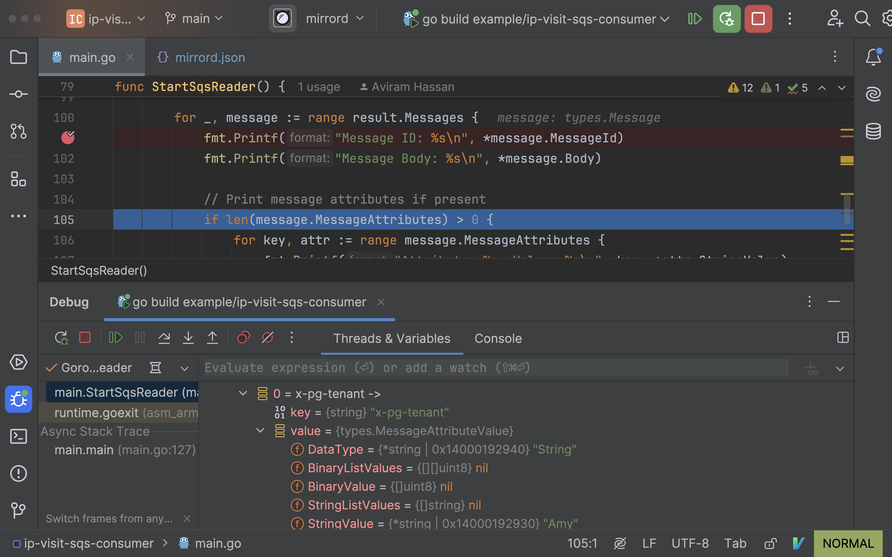 ”x-pg-tenant”: ”^Bruno$”) in his mirrord configuration file, make sure the messages he generates for debugging